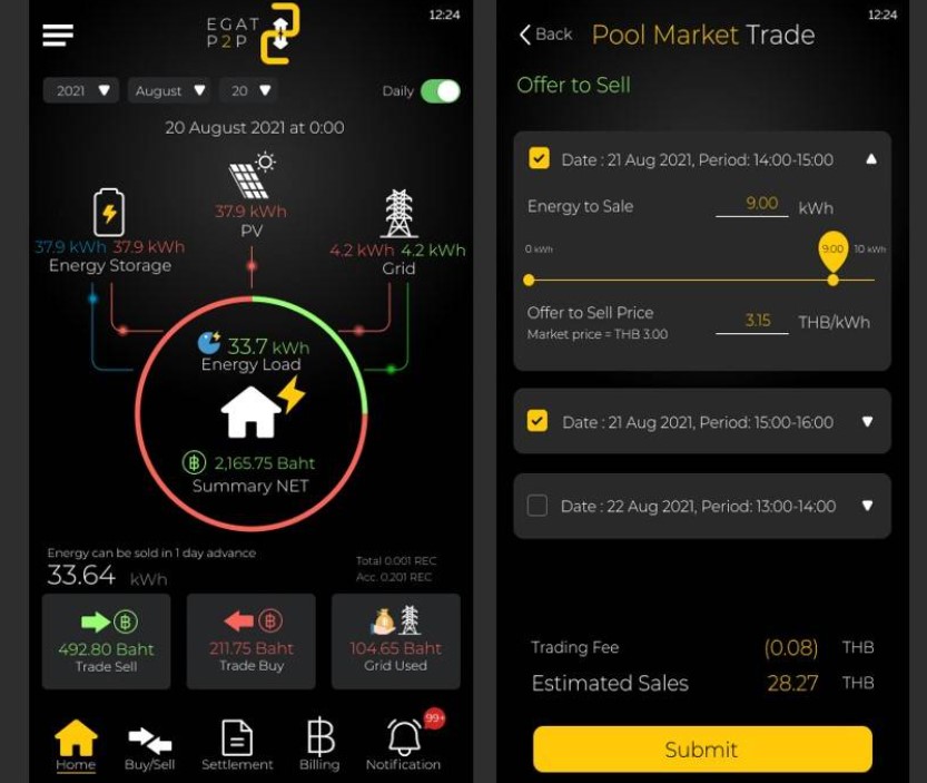กฟผ. นำแพลตฟอร์ม Peer-to-Peer Energy Trading ซึ่งเป็นระบบการซื้อขายพลังงานไฟฟ้าระหว่างอาคารเข้ามาทดสอบในโครงการ เมื่อบางอาคารผลิตไฟฟ้าจากโซลาร์เซลล์ได้เกินความต้องการแทนที่จะเก็บไว้ในแบตเตอรี่ก็สามารถขายให้กับอาคารที่ผลิตไฟฟ้าได้น้อยกว่าความต้องการใช้ไฟฟ้า รวมถึงสามารถออกใบเสร็จเมื่อซื้อขายพลังงานไฟฟ้าแล้วเสร็จ เพื่อรองรับโครงสร้างตลาดไฟฟ้ารูปแบบใหม่ในอนาคตที่จะมีการซื้อขายไฟฟ้าระหว่างผู้ใช้ไฟฟ้าด้วยกันเองมากขึ้น