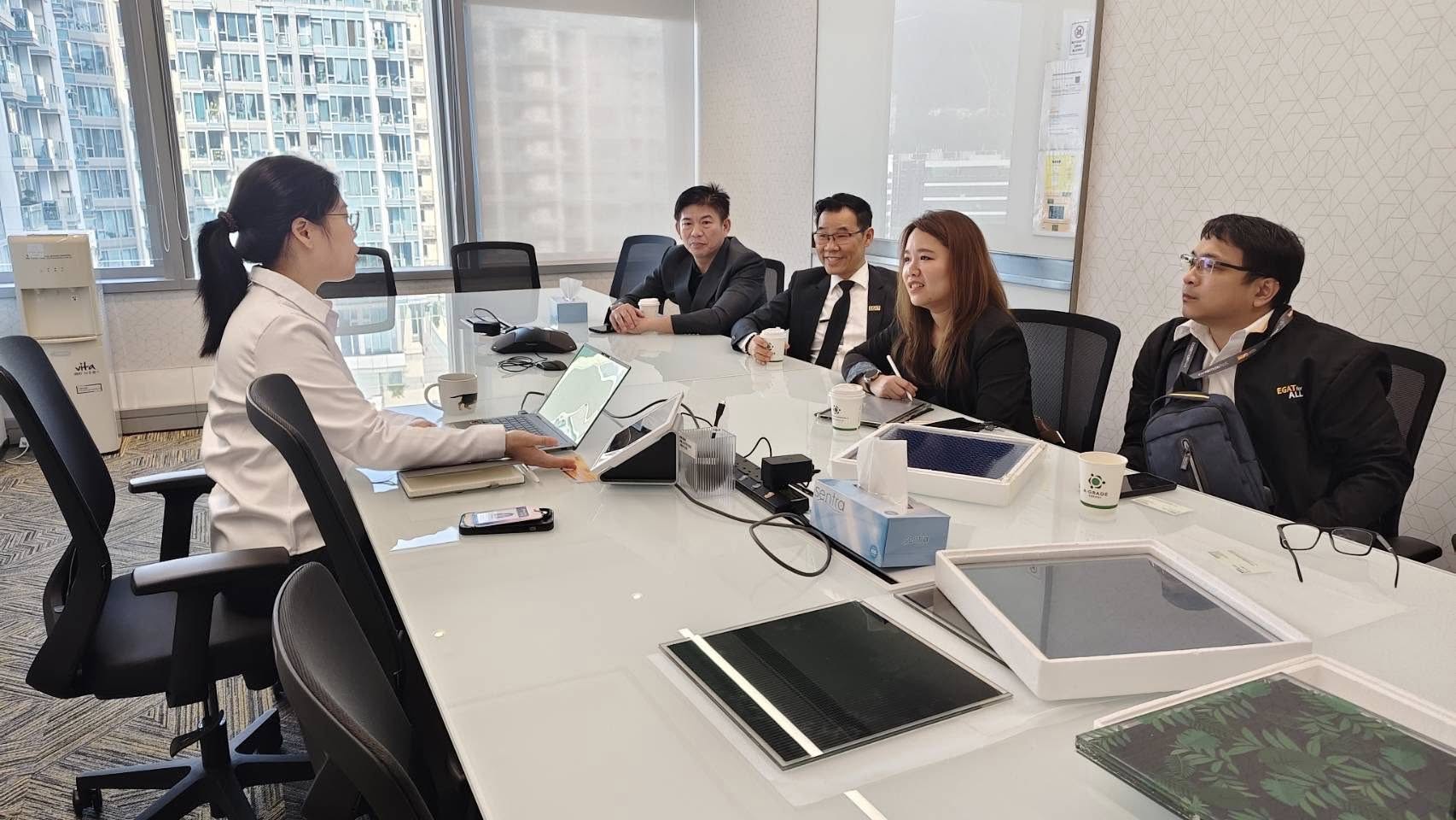 ทั้งนี้ นายจาตุรนต์ ไชยะคำ กงสุลใหญ่ ณ เมืองฮ่องกง ได้มาเยี่ยมชมผลงานของ กฟผ. และได้ให้ความสนใจ โดยพาทีมนักประดิษฐ์ กฟผ. ไปดูงานบริษัท A-Grade Energy Limited ณ Science Park Hong Kong เมื่อวันที่ 5 ธันวาคม 2568 ซึ่งเป็นบริษัท Start Up ผลิตแผงโซลาร์เซลล์สำหรับติดตั้งบนพื้นและผนังอาคาร ที่รัฐบาลฮ่องกงให้การสนับสนุน