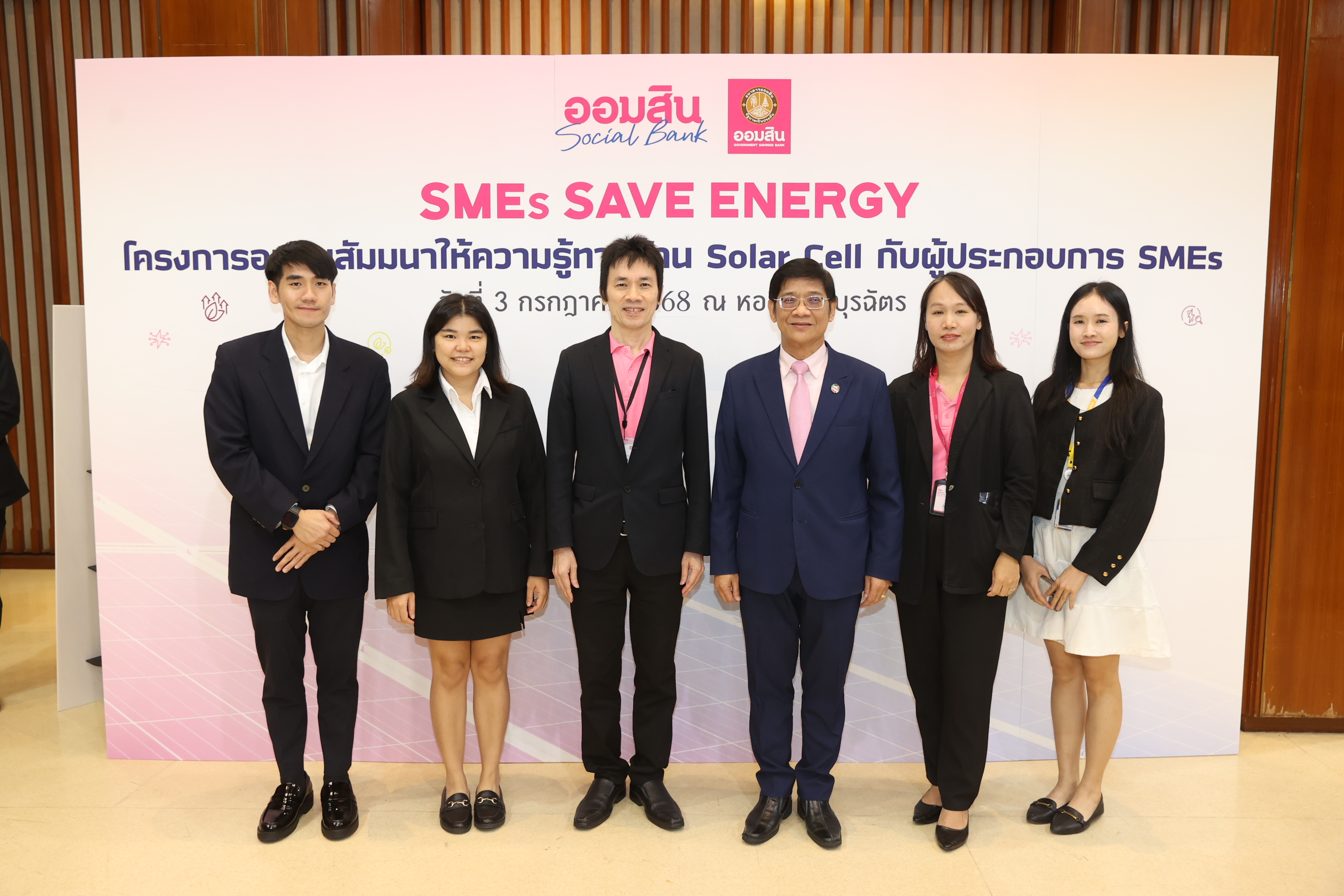 เมื่อวันพฤหัสบดีที่ 3 กรกฎาคม พ.ศ. 2568 ธนาคารออมสินได้จัดงาน “โครงการ SMEs Save Energy” ณ หอประชุมบุรฉัตร ธนาคารออมสินสำนักงานใหญ่ โดยมีวัตถุประสงค์เพื่อส่งเสริมให้ผู้ประกอบการ SME ไทยมีความรู้ความเข้าใจในการใช้พลังงานสะอาดอย่างมีประสิทธิภาพ ควบคู่ไปกับการดำเนินธุรกิจตามแนวทาง ESG (Environment, Social, Governance) ซึ่งจะช่วยยกระดับธุรกิจสู่ความยั่งยืนและเป็นมิตรต่อสิ่งแวดล้อม
